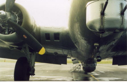 passions. For me, that "thing" was military aviation and WWII history. As a youngster I built model airplanes, and each week I could be found glued to the TV watching "12 O'clock High." I watched spell-bound as GEN Frank Savage, flying "Piccadilly Lilly," led his bomber squadron over targets in Germany; his gunners fending off vicious fighter attacks. I imagined myself a part of his crew, manning a gun or working the bombsight. My youthful naivetö allowed me to believe this to be a glorious adventure. I wanted to fly in a B17! Throughout the years my father took me to air shows and I continued to build models. When I was eighteen, I decided on a career in Naval Aviation and enlisted with the hopes of flying fighter aircraft. However, I didn't figure on being disqualified because of my severe nearsightedness. Even though I had to settle for a turbine powered destroyer, my fascination with flying continued. I found modern jets to be as equally captivating as their WWII ancestors. The B17 still loomed large in my mind. I would attend air shows that had B17s on static display, but none were flying, much less offering rides. The chances of fulfilling my dream seemed to dwindle with each passing year. In 1998 I was at the EAA fly-in at Oshkosh, WI., and saw the "Aluminum Overcast" in flight. It was a thrilling sight, but I thought it was just part of the demonstrations taking place that day. A few months later I learned that the EAA took the Aluminum Overcast around the US giving tours. The chance to fulfill my dream was at hand, but the cost was a bit steep. When I told my wife of this opportunity she insisted I go, and offered to pay the bill. I protested, but she convinced me we could do this, and insisted I go fly. I made my arrangements and on May 23, 1999 I arrived for my first B17 ride. I arrived two hours early. This gave me time to check in, get a short briefing, and then check out the plane. Few people were there and that enabled me to get up to the plane without being in anyone's way, or anyone in mine. I walked around the aircraft studying all the details. I stood in the wheel well, ran my hand along the wing and stared up into the nose cone. It was beautiful, but not as big as I envisioned. I analyzed the wings: The Clark wing has a large surface area which provides a lot of lift and has a relatively low stall speed compared to the B24. However, the long cord does increase drag, reducing the aircraft's cruise speed. Moving along the waist I noticed how it narrowed. This may prove a problem moving through the aircraft. I stand 6' 2" and suspected the ceiling height was slightly less. The horizontal stabilizer was huge. Its span was larger than the wingspan of many fighter's. The stabilizer was about chest high and I examined the controlling surfaces. During WWII the control surfaces were made of a resin impregnated fabric which reduced the weight of the aircraft. This material had a more modern origin and felt more like a drum head, and had a similar sound when I thumped it. The rudder and ailerons used the same material. |