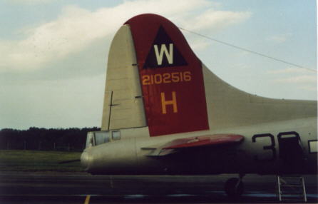 left with a natural aluminum finish. The triangle on the tail identifies the 1st Air Division. The W identifies the group as the 398th BG and the number thirty on the fuselage signifies the