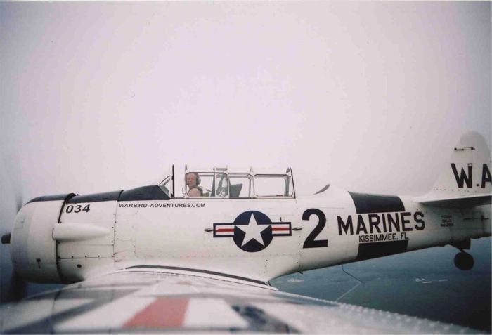 Keith also took a ride in a AT-6 "Texan". The camera is mounted on the wing tip, and the pilot has ducked out of sight in the rear seat.