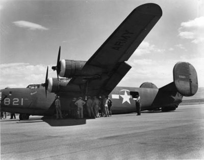 The details of this accident are missing, but it appears a problem with the landing gear resulted in the crew bailing out with the exception of the pilot and copilot who then flew their bird in. The starboard landing gear collapsed shortly after landing. This accident took place at Pocatello, Idaho. The ship is a B24D, 41-11821, nicknamed "Mescal". Aircraft | Crews | Places | Letters | Strike Copyright © 1998-2026, 486th Bomb Group Association. |