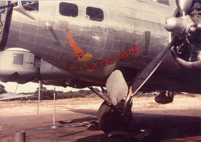 "Chatterbox" Its not clear whether this is a 486th fort. The blue band around the nose suggests 833rd squadron, but it is too thin. The name "Chatterbox" is unknown. (486th collection, 8th AF Musesum via David Brown) Aircraft | Crews | Letters | Places | Strike Copyright © 1998-2026, 486th Bomb Group Association. |