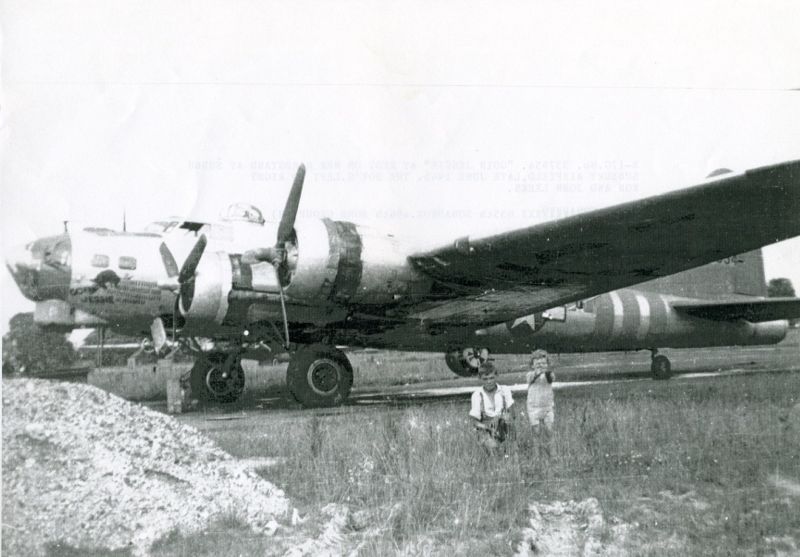 Goin Jesse after the war. In the original photo you can see the civilian ID code painted beneath the wing. This allowed the civilians to report pilots who flew dangerously about the country side. The two lads are Ron (left) and John Leeks. (courtesy of Roland Andrews) Copyright © 1998-2026, 486th Bomb Group Association. |