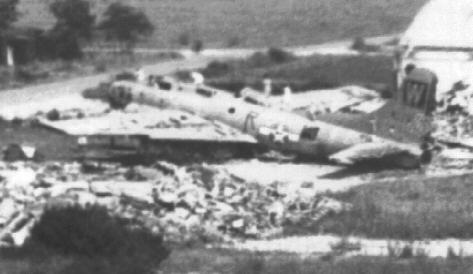 This battered B17G is Lady V of the 834th BS (red "R"). This plane made an emergency landing on April 10, 1945 at Venlo Airfield in the Netherlands. It remained there close to the former German control tower and was finally scrapped in August 1947. These pictures are provided courtesy of Dr. Hub Groeneveld who is researching the aircraft's history on behalf of the Historical Workgoup Venlo/Herongen Airfield. Lady V is also known to have flown in the 833rd (4N-K) bomb squadron. Dr. Groeneveld would like help with his research and would appreciate any information describing the Lady V's career. In particular,