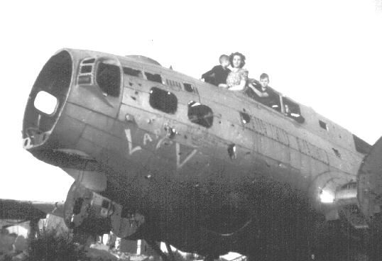 In 1945 the aircraft of the 486th received a new color scheme, which included yellow control surfaces and 3 stripes forward of the empannage. The previous markings weren't removed before hand and the "2S" can be seen between the bars in this shot. Copyright © 1998-2026, 486th Bomb Group Association. |