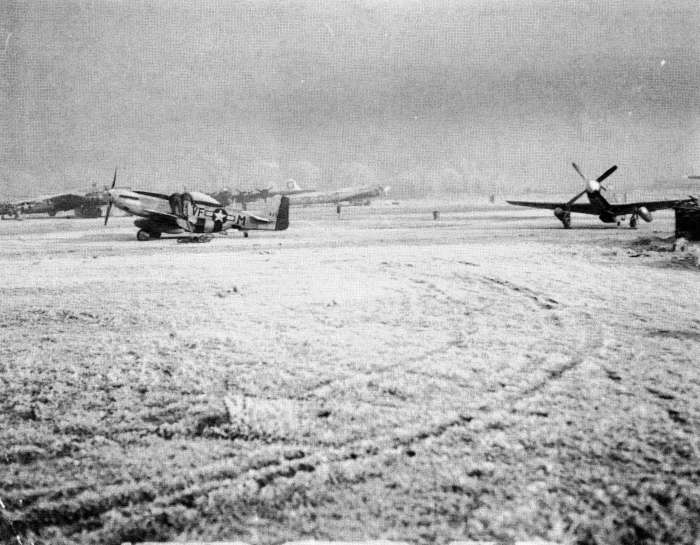 P51D "Mustangs" visit Station 174. The pilots may have been former 486th Bomber pilots.