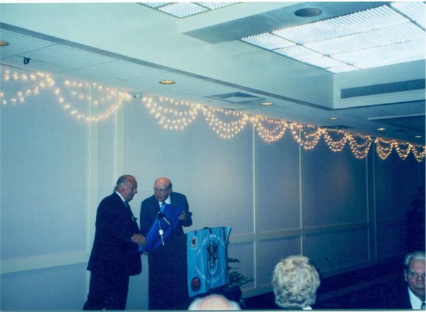 Graeme Garden presents Burt Paquin a painting.(photo: Ray Garrett, 834th)