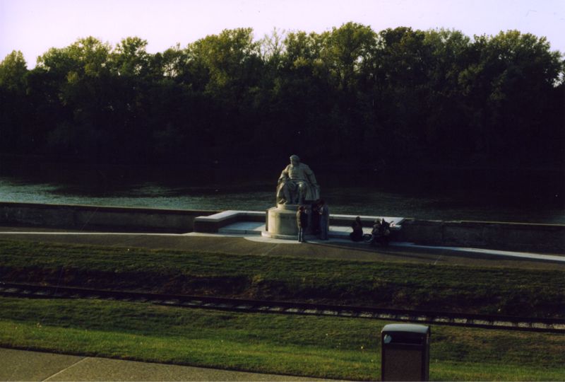 A monument to one of the significant figures in the Battle of Vincennes. I believe this is COL Frances Vigo, a spaniard who helped George Rogers Clark.