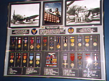 Frances "Gabby" Gabreski is America's top living Ace, and the top ace of the ETO. The medals above are a collection of the awards he won during his time on active duty. These include the distinguished service cross, silver star, legion of merit, distinguished flying cross, bronze star, air medal, POW and various campaign medals. Gabby is credited with 28 air to air kills in WWII and 6.5 during the Korean War. Before the 8th AF had set up shop in England, Gabby had volunteered to fly as a liason officer with a polish squadron in the RAF. During his time with the poles he scored his first kill and learned valuable Air Combat Manuevering skills that he would be able to pass on. While with the poles he won various polish medals which are visible in the lower right. Gabby was transferred back to the 8th AF and served with the 56th Fighter Group under Hub Zemke. The 56th was equipped with the P-47 "Thunderbolt." On the day Gabby was to be rotated home he decided to take part in one last mission. On a strafing run of a German airfield he bottomed out and crashed. He was taken prisoner and spent about nine months in a POW camp. He would later be joined by Hub Zemke. (photo by David Brown, son of Warren Brown) Copyright © 1998-2026, 486th Bomb Group Association. |