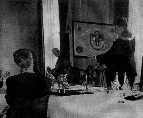 Councillor Ray Smith, the Lord Mayor of Sudbury, displays the 486th banner which was presented to the town council by Bob Cross and Bob Nolan.