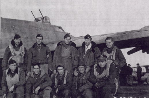 CAPT Stroebe's crew and LTCOL Norton Back row (L to R): LTCOL Harold Norton (AL), CAPT Harry Stroebe (P), 1st LT Eugene H. Kirkendall (CP), 1st LT Edwin D. Walters (PNN), 1st LT George Tolson (N). Front (L to R): 1st LT Bennie E. Lynch (DRN), T/SGT John L. McCabe (RO/G), T/SGT James J. Moore (FE/Top), T/SGT Russell J. Brown (Armorer/G), 1st LT John W. Clarke (B). The crew flew its first two missions with the Wegener crew. Walters was the pin point navigator and mickey operator. The photo was taken after the last mission. Aircraft | Crews | Letters | Places | Strike Copyright © 1998-2026, 486th Bomb Group Association. |