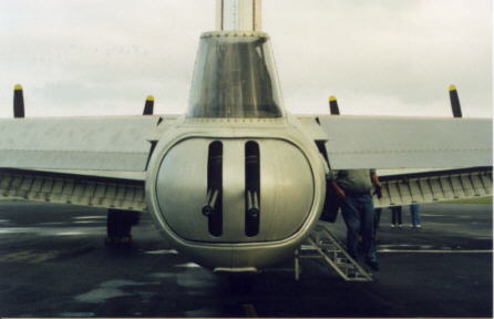 to stand. A seat was provided which was similar to a bicycle seat. The gunner sat with his feet folded under him. Entry to the tail was best affected by using a hatch located on the starboard