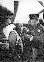 Don Conyers at left. George Bevins was wounded and is being attended to by Dr. Orndorf, right.