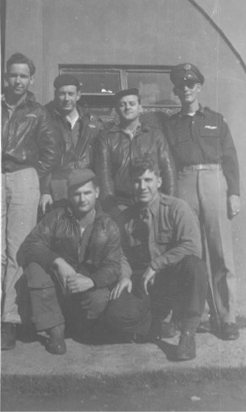 Kneeling (L to R): Henry Baxter (BG), Rex M. Wilde (CP). Standing: Clyde Watkins (ROG), Travis Wright (G), Carl Kloos (AEG), and William G. Simpson (P), in England, Nov 10, 1944. (photos submitted by John and Paul Wilde). |