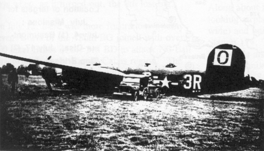 The crew of "Pandora's Box" was flying this loaner aircraft on July 4th, 1944. The aircraft was badly damaged, and the pilot (LT Pearson) and co-pilot (LT Orlasky) were badly injured by flak over their target (an airfield in France). The navigator and engineer, coached by the injured copilot, put the aircraft down with wheels up. This plane is #688 from the 832nd BS and would not fly in combat again. (photo by Frank Holt, reprinted from "War Stories of the O & W"). Aircraft | Crews | Letters | Places | Strike Copyright © 1998-2026, 486th Bomb Group Association. |