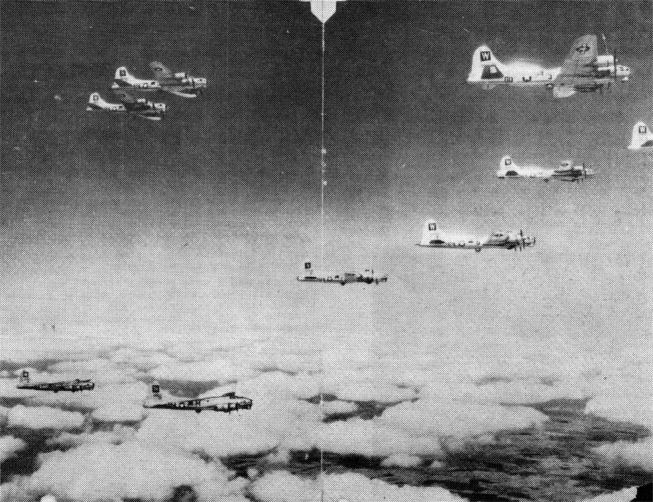 The 833rd Bomb Squadron in flight. From the M/SGT Roy Roop collection.