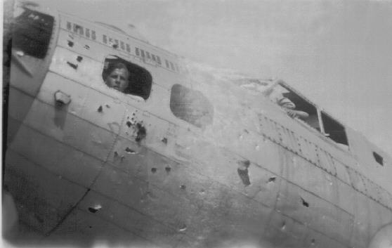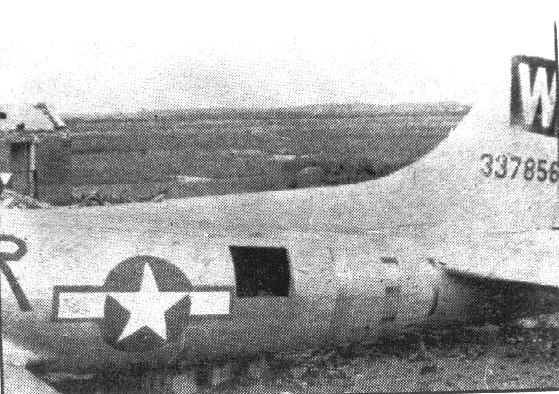 In 1945 the aircraft of the 486th received a new color scheme, which included yellow control surfaces and 3 stripes forward of the empannage. The previous markings weren't removed before hand and the "2S" can be seen between the bars in this shot. Copyright © 1998-2026, 486th Bomb Group Association. |