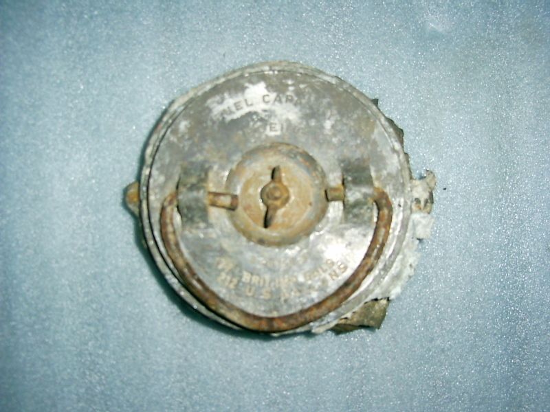 This is a fuel cap from the wreckage of "Oh! Miss Agnes" (H8:001:B). This aircraft was lost on April 17, 1945 over what was Czechoslovakia. All crewmen survived and were taken POW, but were repatriated before they could be assigned to a POW camp. Photos courtesy of Richard Fabián, the Czech Republic.