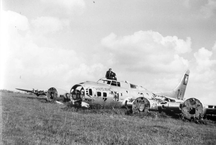 "Wolfel Bear," #908:H8:H On, November 10th, '44, LT Dimel and crew were forced down in Belgium, near Bastogne. LT Dimel and crew safely landed with no injury to crew. The photo above shows the state of #908 May or June of 1946 after souvenir hunters, and salvors had completed their work. The gentleman sitting atop "Wolfel Bear" is Mr. Firmin Roulin. Mr. Roulin was a member of the Belgian Army and was wounded and captured during the German invasion of Belgium. He was held near the German city of Bobstadt, and after his repatriation worked for the Belgian railway. Firmin Roulin was a private in an engineering unit of the Belgian Army, which was surprised by the first round of attacks by Ju 87 (Stuka) dive bombers. 20 of the 24 man unit were killed, and 3 were wounded. Firmin was one of the wounded and was initially treated in Brussels before being moved by train to France, not far from Dunkerque. The train, marked with red crosses, was also attacked by Stukas, and Firmin escaped injury. The German captures took their captives on a 4 week march into Germany and internment. The prisoners were barely fed and received little water. One prisoner attempted to drink water from a ditch, and was shot by a German guard. The prisoners were then sent as slave labor to various jobs in factories, harbors, and farms. Firmin, being wounded, was not initially selected, but did eventually wind up working as a farm hand on a German farm. Every night, the workers were locked up in the mayor's house, with guards posted. Following the battle of Stalingrad, the outlook of the local German's began to change as men returned from the Eastern front, wounded or dead. The locals became more friendly toward their captives. However, the treatment still varied between those forced to work in the factories and those on the farms. To ensure no fraternization took place between farm workers, and their masters, the farm workers were rotated to different farms. Treatment of Polish, Russian and Partisan prisoners was much harsher. The final disposition of the aircraft is unknown, but it was most likely cut up for scrap. According the Claude Roulin, the perspex was used to make crosses, perhaps in memory of the crew. (Photos and information courtesy of Claude Roulin, Belgium). Aircraft | Crews | Letters | Places | Strike Copyright © 1998-2026, 486th Bomb Group Association. |
