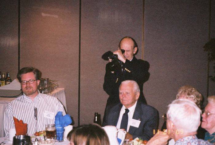 Peter Ruplenas films the activities at the reunion banquet.