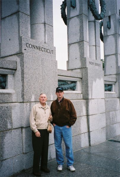 Eugene Dembowski, R/O/G, Webber's crew, 832nd, and his son, Tom, at the WWII memorial in Washington, D.C.