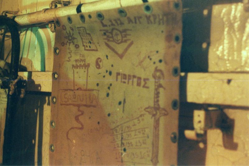 A sheet of canvas is not only a sailor's bunk, but his artist canvas. Here Greek sailors recorded their thoughts.