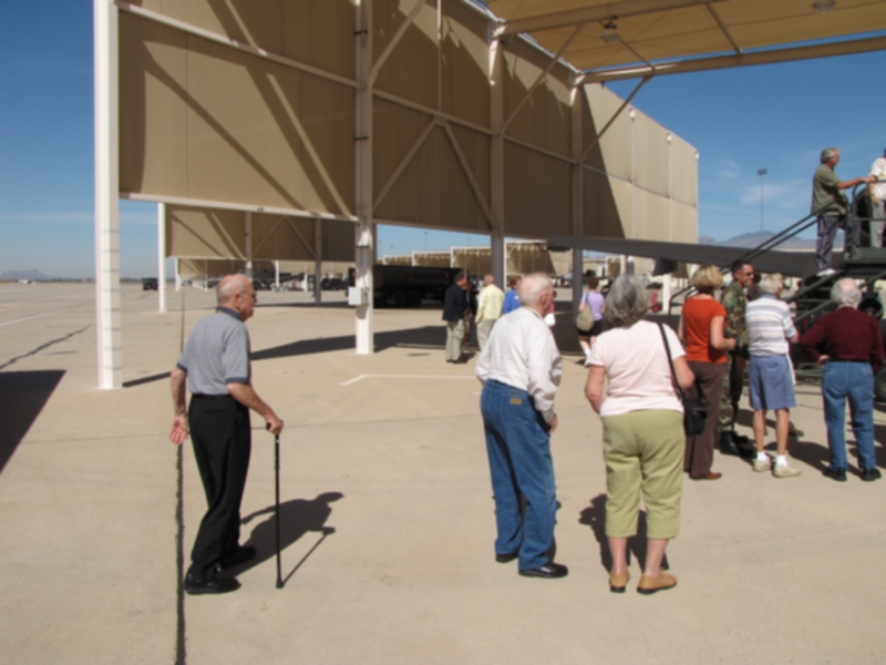 The 486th BGA examines an A10 Warthog parked at Davis-Monthan. Jim Martin is at left.