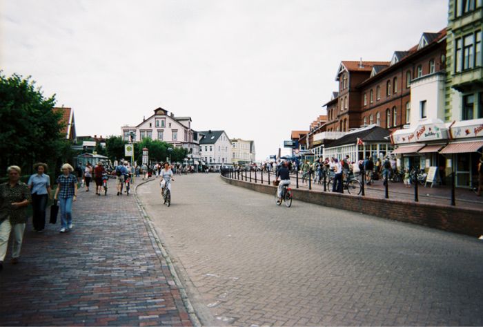 The modern view. The Kleinbahn terminal is at the end of the row of buildings at the right, with the tracks visible behind the brick wall. The tall building in the center of the row of buildings is the "VierJahresZeit" (Four Season) hotel where most of the American's stayed for their visit. It is also visible in the older photo, but its name, and function then are unknown.