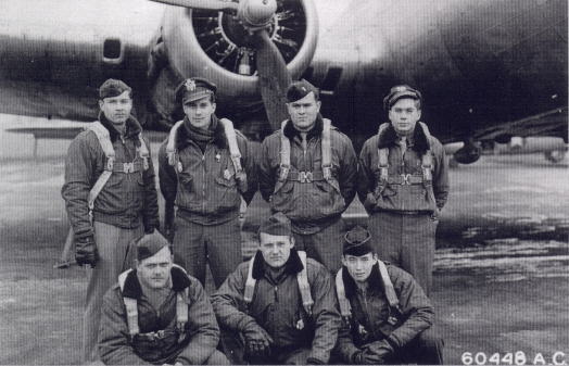 LT Estersohn's Crew Standing (L to R): 2nd LT Ira Slingsby (CP), 2nd LT Ronald Casperson (B), 2nd LT Carl J. Estersohn (P). Front (L to R): SGT Joe Curley (BG), SGT Pete Herakovich (TG), SGT Joe Cummings (FE/TT). Not pictured: SGT Joe York (G). < Ellingford | Fadden > Aircraft | Crews | Letters | Places | Strike Copyright © 1998-2026, 486th Bomb Group Association. |