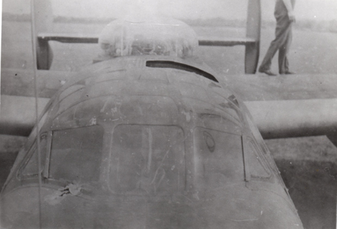 #688 sits on the ground after her crash landing. Four hundred holes from FLAK. The aircraft was scrapped.