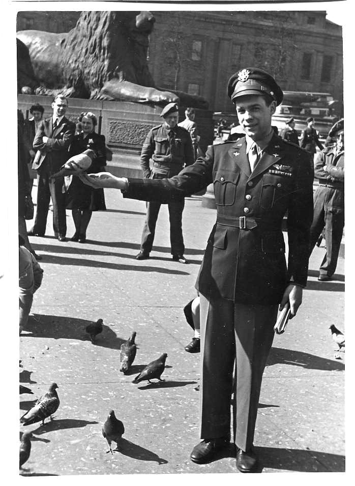 Richard Douglas on a pass feeding the pigeons at Trafalgar Square.