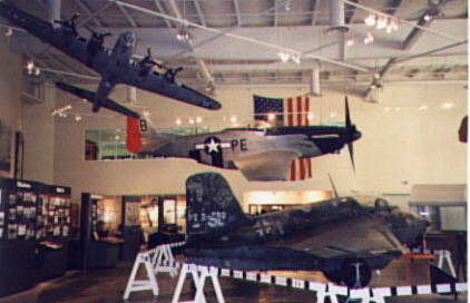 Aircraft on display in exhibit area. A model B17G and a P51D hang over an Me-163 "Komet." The P51D has the markings of the 328th FS/352 FG, "Blue Nose Bastards." (photos by David Brown, son of Warren Brown) Aircraft | Crews | Letters | Places | Strike Copyright © 1998-2026, 486th Bomb Group Association. |