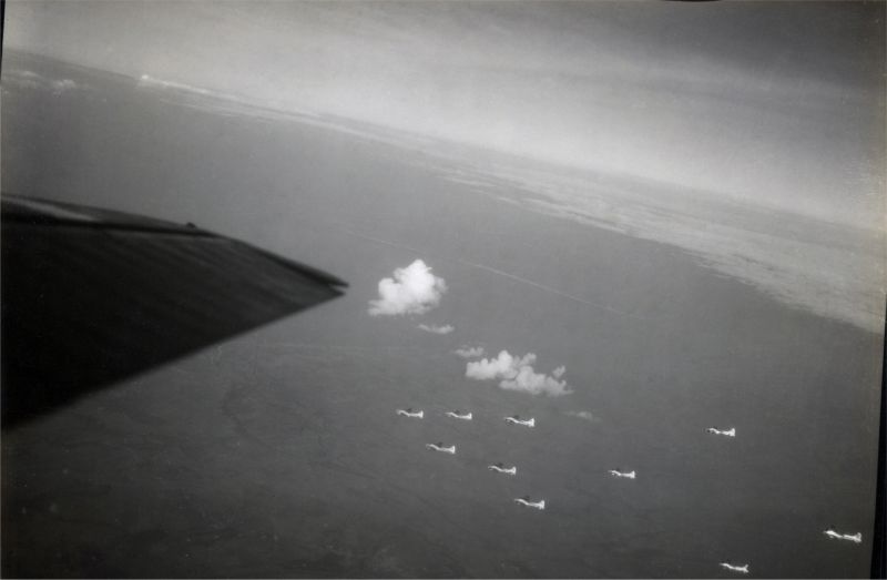 The low squadron photographed from 041:H8:L, "Easy Movement", flown by LT St Clair of the high squadron.