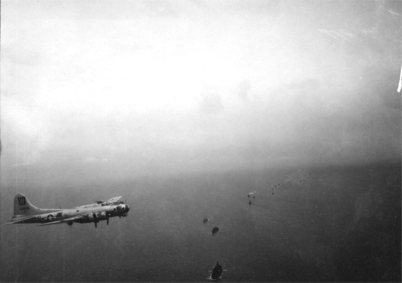 Photographed from 998:H8:E, "Roanoke Magician", flown by LT St Clair, possibly over the English Channel on the return leg of the mission.