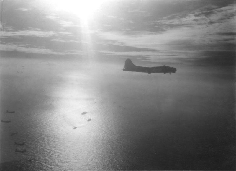 486th Forts over the North Sea on the mission to Dollbergen, Germany, January 1, 1945.