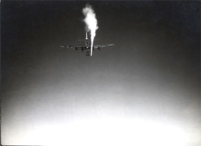 This is 453:4N:E, flown by LT Rygiel on the March 24th mission to Varel, Germany. Photographed from #963, flown by LT Dacus.